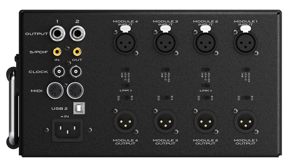 - Chainage possible entre les modules de 1 vers 2 vers 3 vers 4 pour se constituer une tranche de console complète