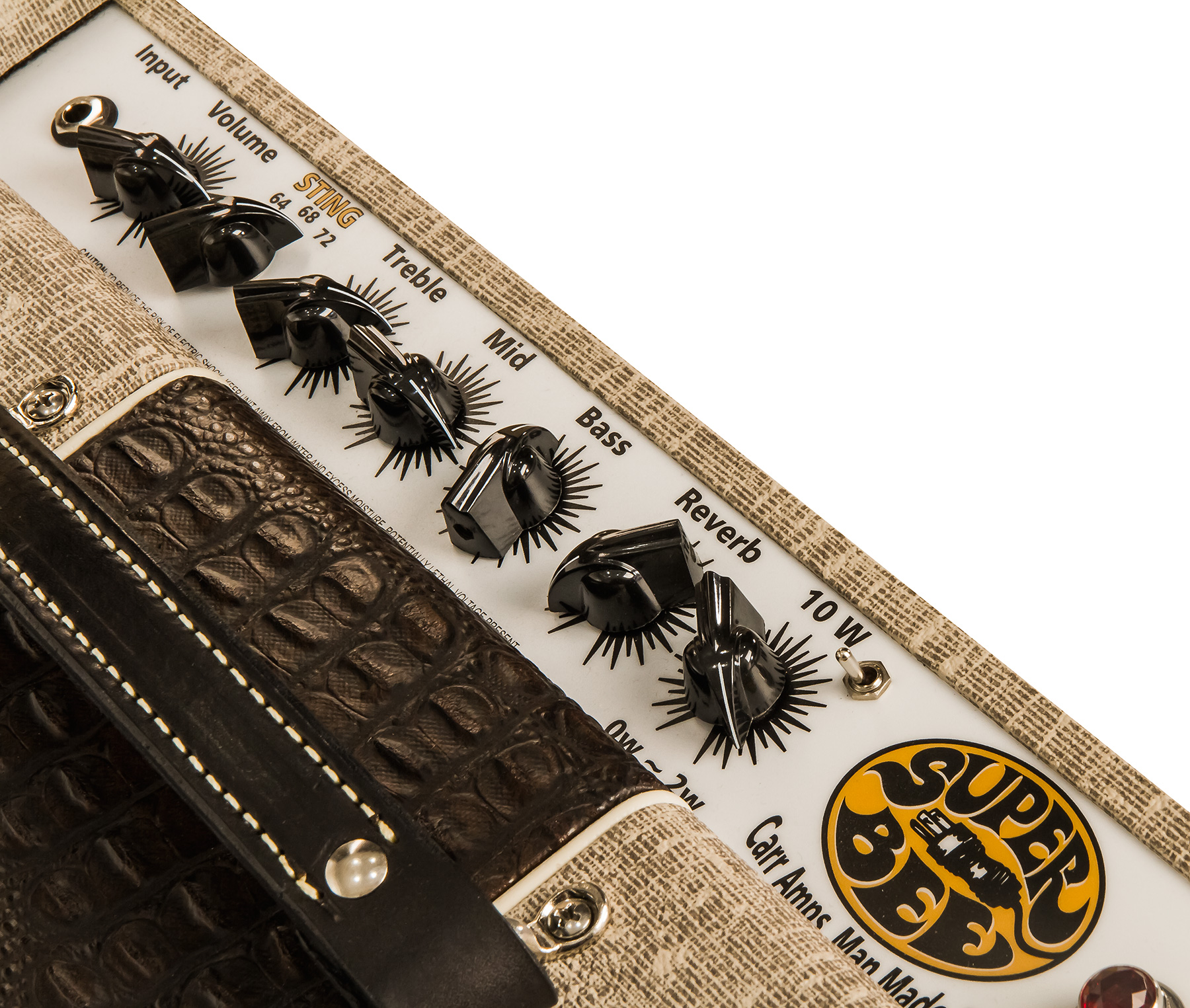 The key to the Super Bee circuit lies in its current-production 6BM8 output tubes. The pair achieves rich, bold, articulate tone remarkably reminiscent of the classic 6L6GC but at only 10 watts — plenty to cut through your drummer at the next club gig, but easily driven into dynamic sonic splendor without violating any noise restrictions.