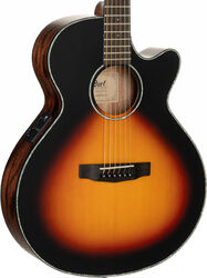 An ideal balance between classic vintage looks from the golden age of guitars and modern yet practical features, the CORT Luce L100F Natural Satin Concert acoustic/electric guitar provides the best of both worlds in perfect harmony with solid Spruce top, layered Mahogany back and sides, Ovangkol fingerboard.
