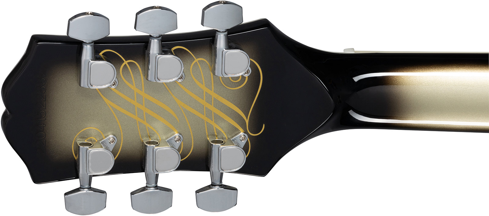 The Epiphone Adam Jones Art Collection consists of seven Silverburst Les Paul™ Custom models, each featuring reproductions of different works of fine art on the back. Adam curated the featured artwork, and additional artwork, designed by artist Korin Faught, adorns the back of the headstock of each model.