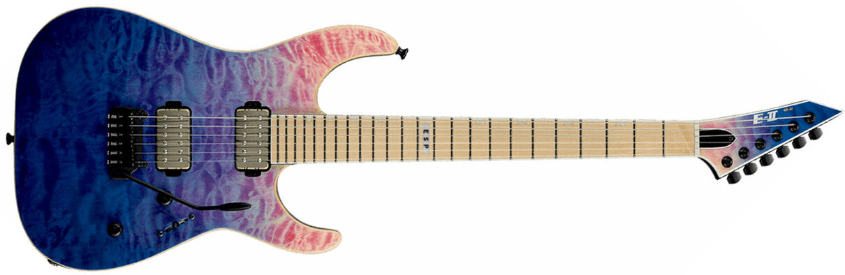 Featuring Mahogany body, Quilt Maple top and Maple fingerboard, the ESP E-II M-II HST QM (Indigo Purple Fade) solid body electric guitar gives all of the tone benefits of a hardtail-style tailpiece with set-thru body design in a beautiful finish.