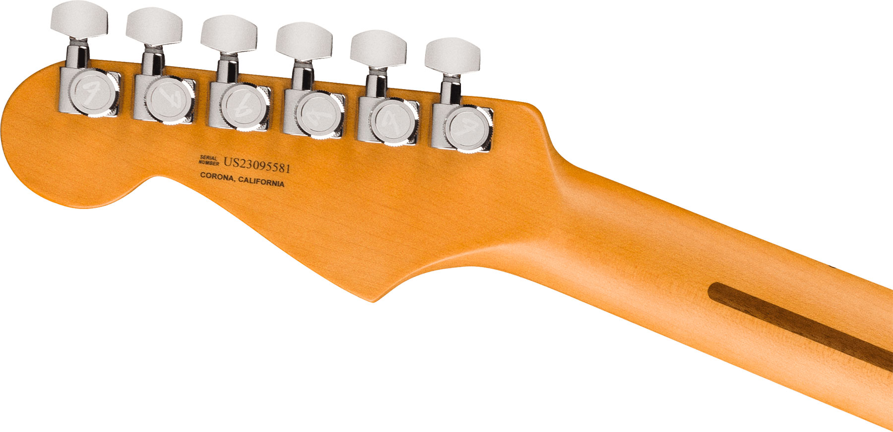 Under the hood, a trio of Ultra II Noiseless™ Vintage Strat® pickups deliver everything from sweet crystalline cleans to searing leads, all without a hint of hum. Patented Fender S-1™ switch cleverly unlocks additional pickup configurations for even more tonal variety. Additional road-ready features include 2-Point American Ultra synchronized tremolo with pop-in arm, polished stainless steel block saddles, cold rolled steel block, deluxe locking tuners, soft-touch knobs and 1-ply anodized aluminum pickguard.