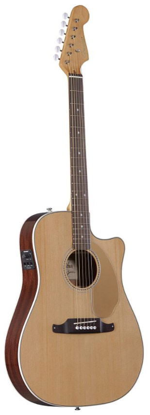 The beautiful FENDER California Sonoran SCE Thinline (0970714021) acoustic/electric Dreadnought guitar, with solid Spruce top, laminated Mahogany back/sides, Fishman preamp, and a thinner 3" body was built with female guitarists in head.