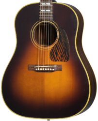 Introduced in a square-shoulder configuration in 1962, the Country Western was originally created in 1955 as a variation of the popular Gibson Southern Jumbo model. With the body shape of a Hummingbird™ but in a Natural finish and having an unadorned tortoise pickguard instead of the Hummingbird’s casted, graphics-enhanced pickguard, the Country Western delivers wonderful tonal quality and a unique look that has been a resounding hit with players from the moment it was first released, all the way up to the present day; it has been one of our most requested acoustic models for reissue since the 1990s.