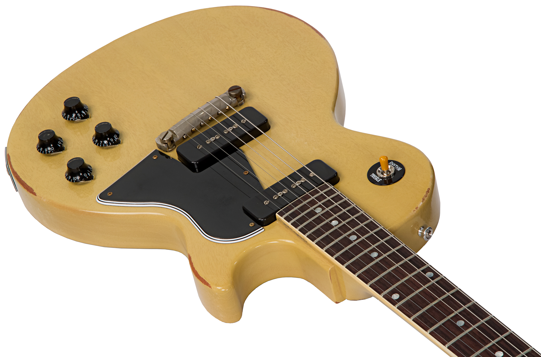 Legend has it that the famous "TV Yellow" color of the Les Paul Special was named for its vivid appearance on black & white televisions in the 1950s. That's debatable. What's not up for debate is the indelible imprint this model had on music history since its inception. The classy looks and thick, meaty tones of the Les Paul Special have been preferred by players of all genres. And this GIBSON Custom Shop M2M 1957 Les Paul Special Single Cut Reissue (LPSPSCM2M14634) solid body electric guitar revives every single feature in spectacular detail for the ultimate vintage ownership experience -- from the solid mahogany construction to the roaring P90s.