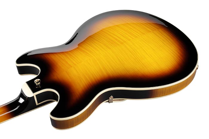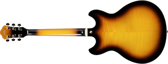 Featuring traditional construction (flamed laminated Maple top/back/sides, Mahogany set-neck, 22-frets Ebony fingerboard) and same alnico humbucking Super 58 pickups as Scofield JSM20 model, the IBANEZ Hollow Bodies Artcore Expressionist AS93FM AYS semi hollow body electric guitar is an excellent choice for Jazz-Fusion, Funk, Rock, Pop music and even Hard/Rock.