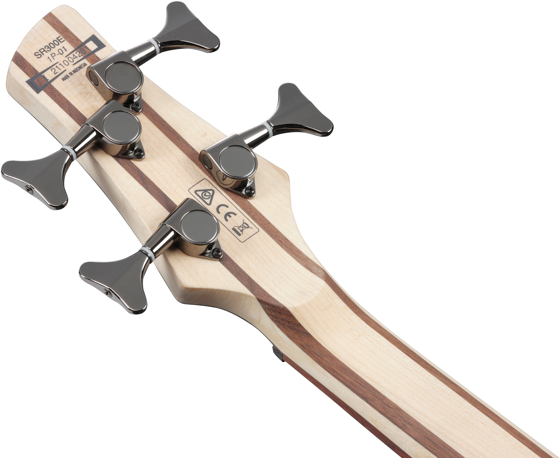 The IBANEZ Standard SR300E MGB solid body electric bass, with Nyatoh body, bolt-on Maple/Walnut neck, 24 frets Jatoba neck and active/passive preamp is a confortable, ergonomic and versatile instrument.