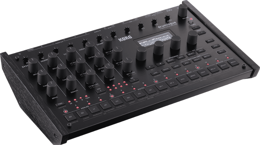 The Korg Drumlogue is a triple function hybrid drum machine: analog, digital, sample player with the following features: