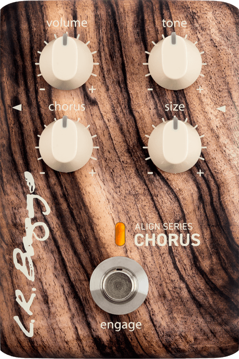 In the same way a choir enhances the foundation of a melody, the Align Chorus complements your acoustic guitar rather than placing the effect in the limelight. With the purity of LR Baggs’ circuitry and the effect in side chain, the Chorus adds fullness behind your guitar without any signal degradation. We designed the pedal with simple and intuitive controls that help you dial in a pleasing effect quickly and easily. A unique Size control blends two chorus voicings that interact with one another as you turn the knob. It’s essentially like adding more instruments as you increase the size. Additionally, a Tone control shapes only the affected signal, enabling you to dial in the perfect balance for your instrument.