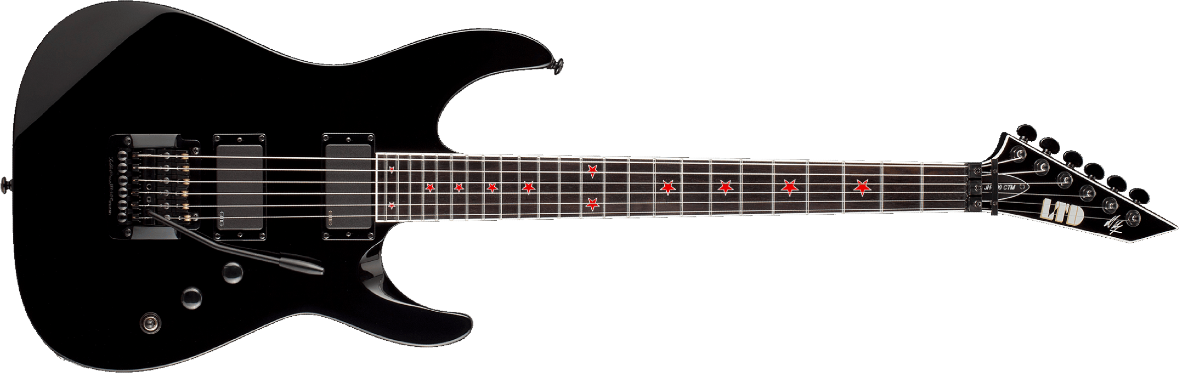 As the primary songwriter and lead guitarist of the iconic thrash metal band Slayer, Jeff Hanneman influenced thousands of guitarists around the world and helped create a sound that will reverberate for generations to come. The LTD JH-600 has long been the most popular Jeff Hanneman Signature Series guitar because it delivers the relentless power that players need to evoke Jeff’s ferocious leads and brutal riffs. It offers neck-thru-body construction at 25.5" scale, a comfortable alder body, and a three-piece maple neck with ebony fingerboard that features the red star inlays used on many of Jeff’s earlier ESP Custom models. The JH-600 also includes components based on Jeff’s personal specifications, including high-quality Grover tuners, a Kahler Hybrid bridge, and an aggressive EMG 85 (neck)/EMG 81 (bridge) active pickup set. Available in Black finish.