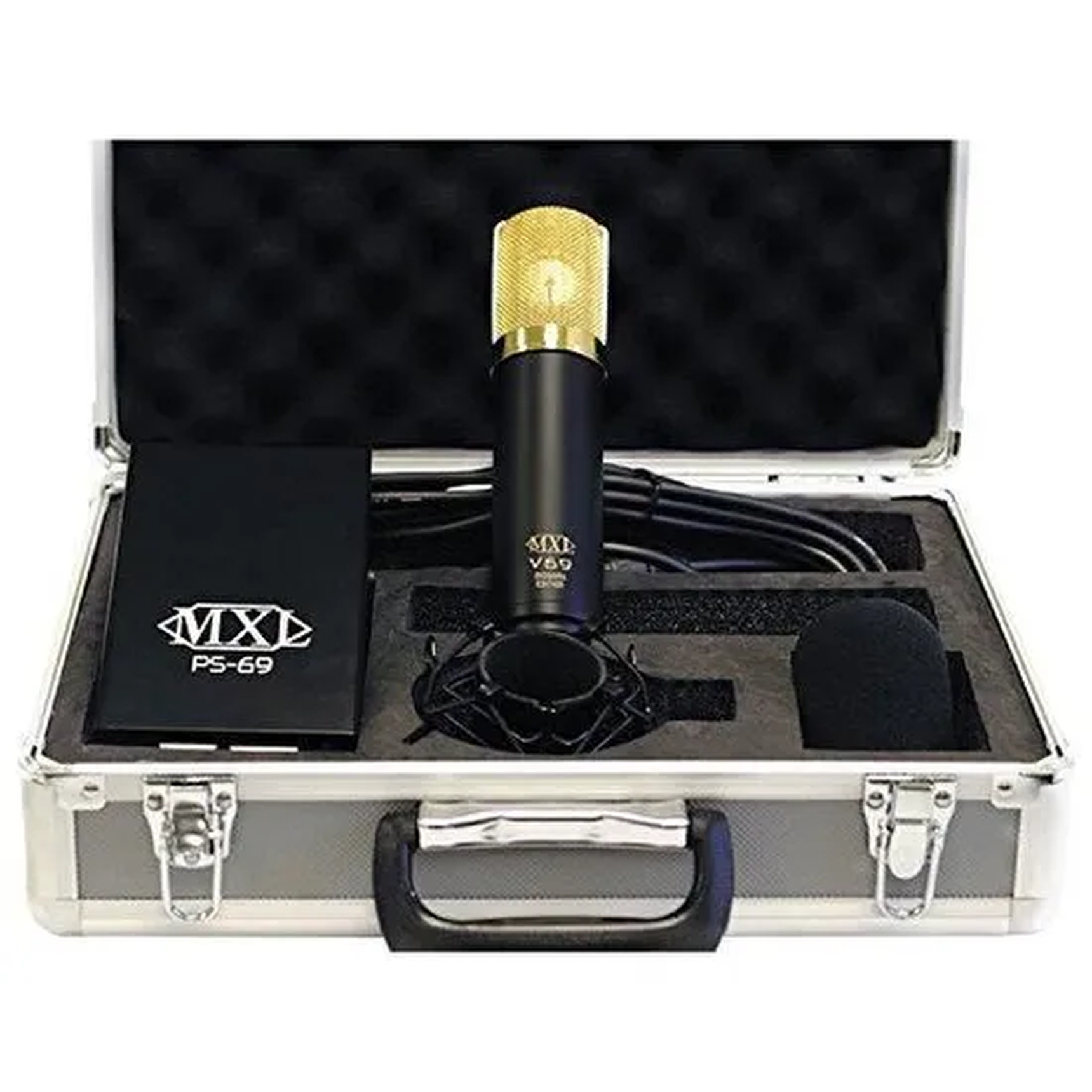 - MXL57 shock mount | MXL V69CABLE1 | 3-pin XLR cable | WS-001 | PS69 power supply | MXL flight case