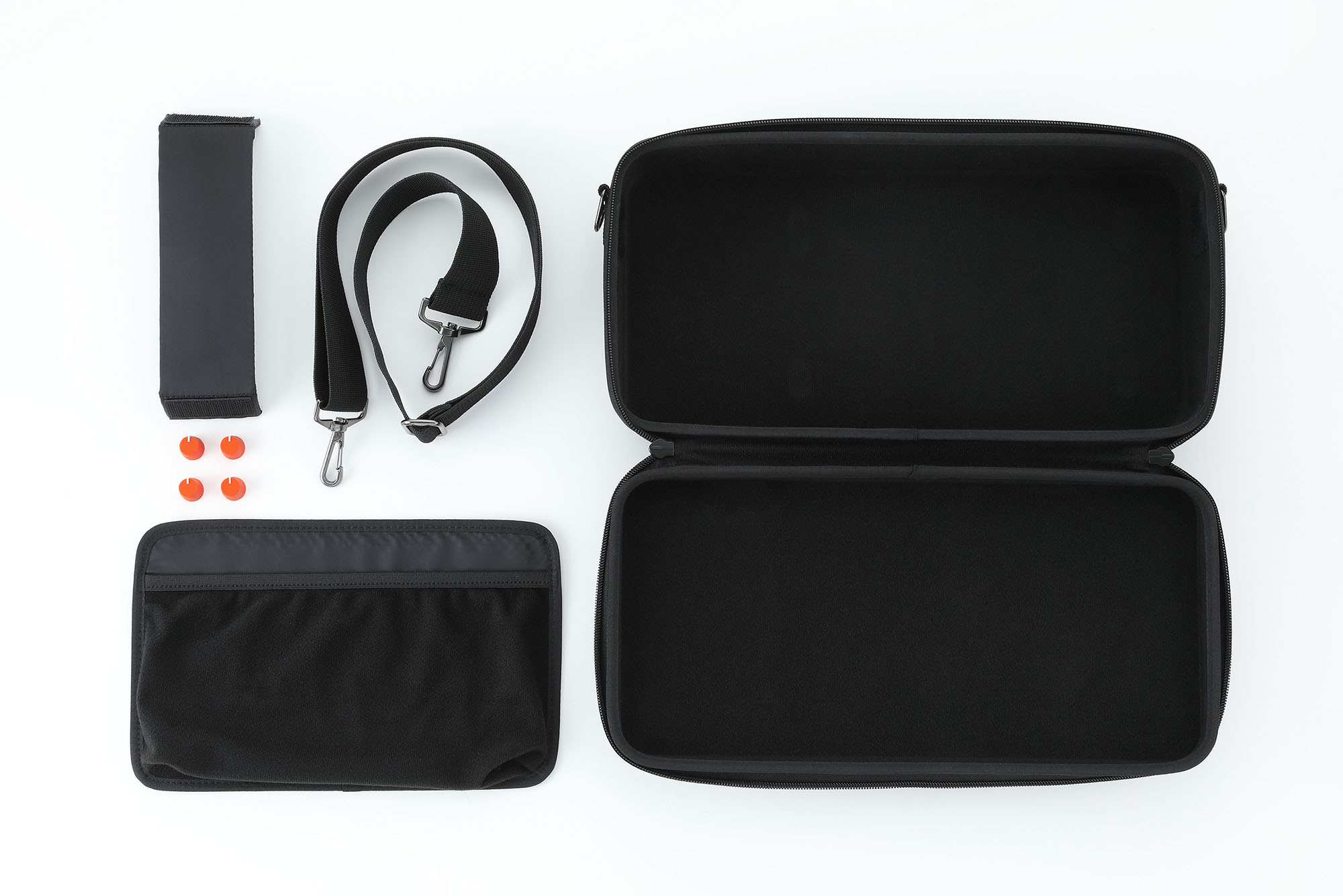 The CB-404 is the official carrying case for Roland's SP-404MKII and previous models in the acclaimed SP-404 range of portable samplers. Sleek and sturdy, it features a semi-rigid EVA shell covered in tough polyester, with an adaptable internal partition to create separate compartments for the sampler and accessories such as the AC adaptor. There's a detachable pocket for storing smaller items, and the carrying strap is widely adjustable. As a bonus, we've added four orange buttons to personalise the look of the SP-404MKII.