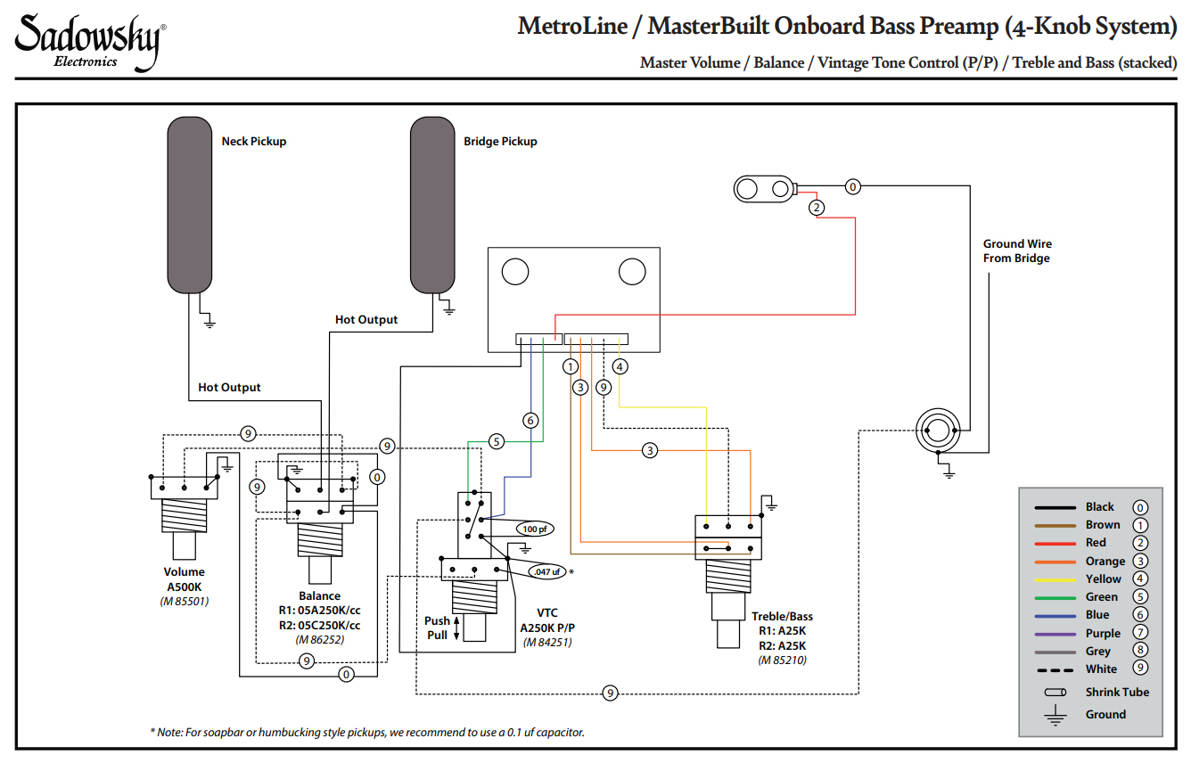 - Sadowsky Treble & Bass boost preamp (true bypass switch)