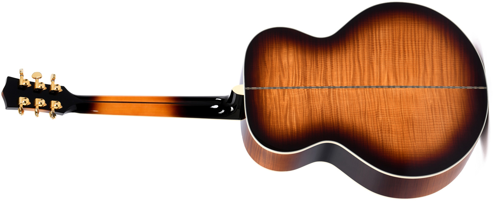 Inspired by an american classic, the SIGMA SG Series GJA-SG200 (Autumn Burst) is an acoustic Dreadnought guitar, featuring solid Sitka Spruce top, layered flamed Maple back/sides/neck and Micarta fretboard.