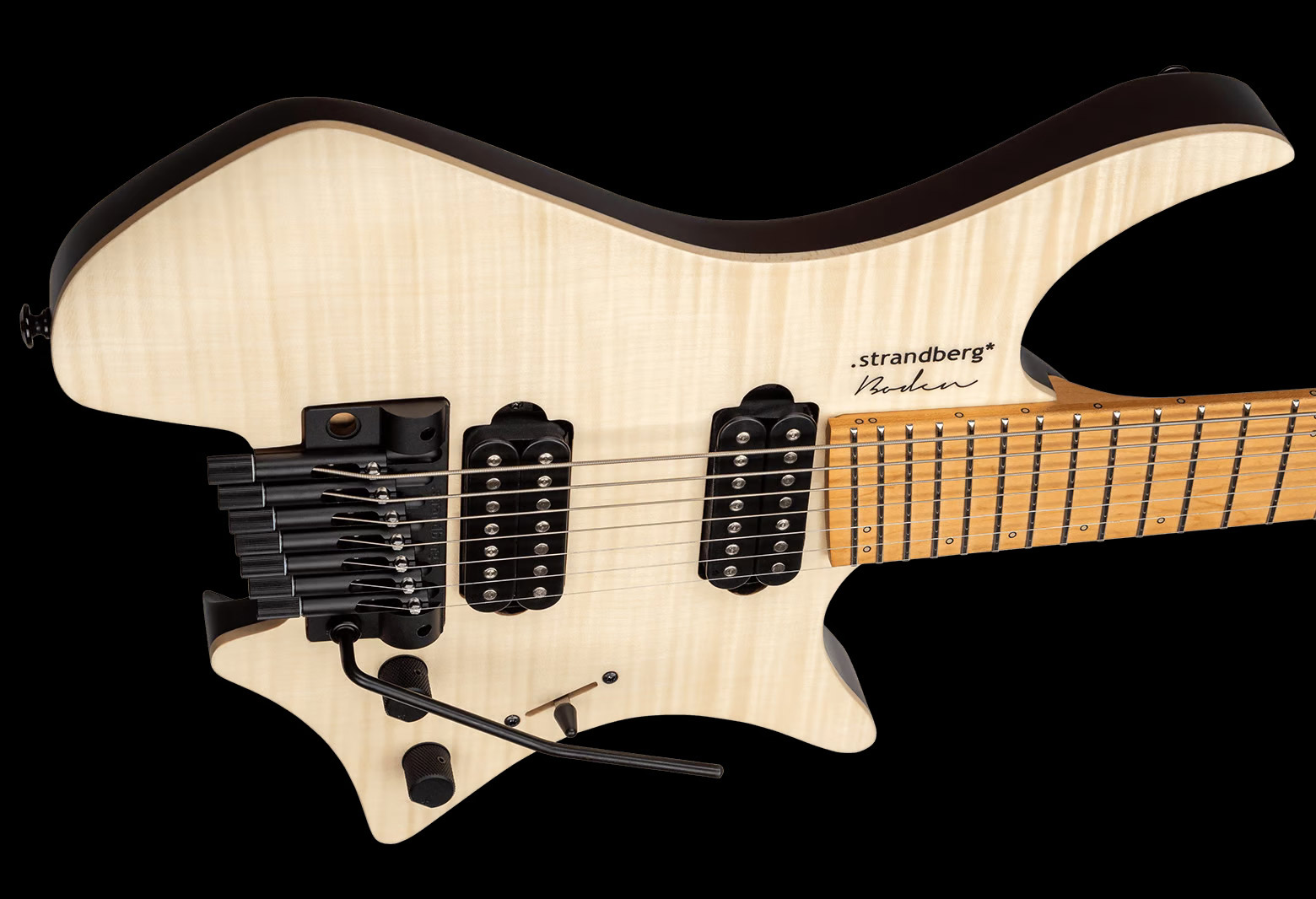 The STRANDBERG Boden Standard NX 7 Tremolo (Natural) seven string solid body electric guitar was developed to provide the same key features that our guitars are acclaimed for but with solidbody construction, own design pickups, and figured Maple top veneers to reduce costs and offer a line that delivers outstanding value as well as topflight performance.