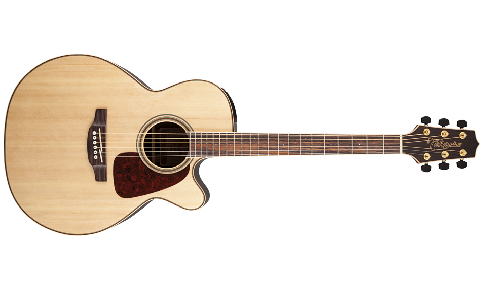 Caractéristiques principales de la guitare acoustique folk électro Takamine GN93CE-NAT : style NEX (mini jumbo) avec pan coupé, table Epicéa massif, dos 3 pièces Palissandre avec centre Erable Quilt, éclisses Palissandre laminé, manche Acajou/Palissandre (20 frettes, diapason 25.4"), préamp Takamine TK-40D avec accordeur