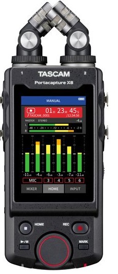 The Portacapture X8 allows the simultaneous recording of up to 8 audio tracks in total (6 separate tracks + stereo mix). You can choose which inputs to record to which tracks, apply noise gate, compressor, EQ and reverb, just like on a mixing console