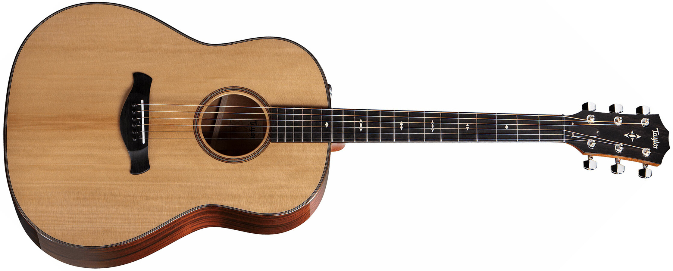 The TAYLOR Builder's Edition 517e acoustic/electric guitar is a fresh take on a traditional sound. The Grand Pacific body shape serves up a more seasoned tone than the time-honoured Dreadnought shape, with a round-shoulder design that allows notes to overlap and blend as they sustain and resonate.