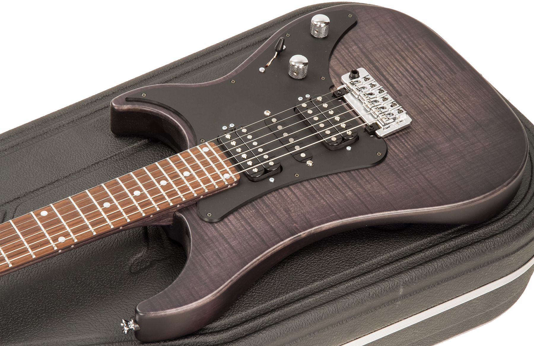 Using a traditional platform (Alder body, figured Maple top, Maple neck, Maple or Rosewood fingerboard, 25,6" scale), it's a versatile instrument thanks to its Vigier Amber HSH pickup configuration and 24 frets allowing extended playing range.