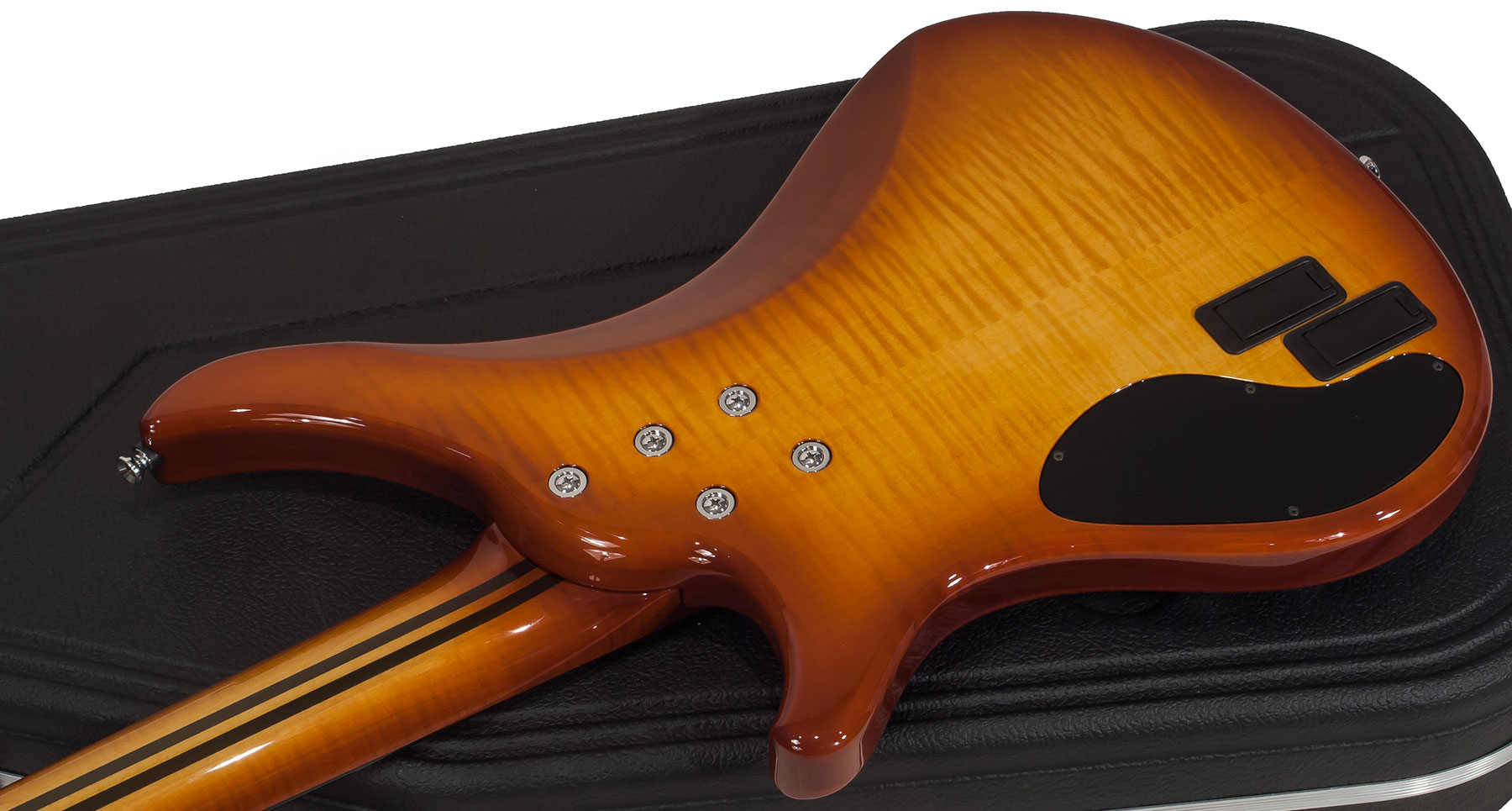 Built in France, the VIGIER Passion IV 5-String (Amber) solid body electric bass with active electronics features high quality tonewoods (dried during long periods for optimum resonance), Phenowood fingerboard with sounds close to Ebony, Vigier custom pickups associated with flexible active electronics, and high performance tuners and bridge.