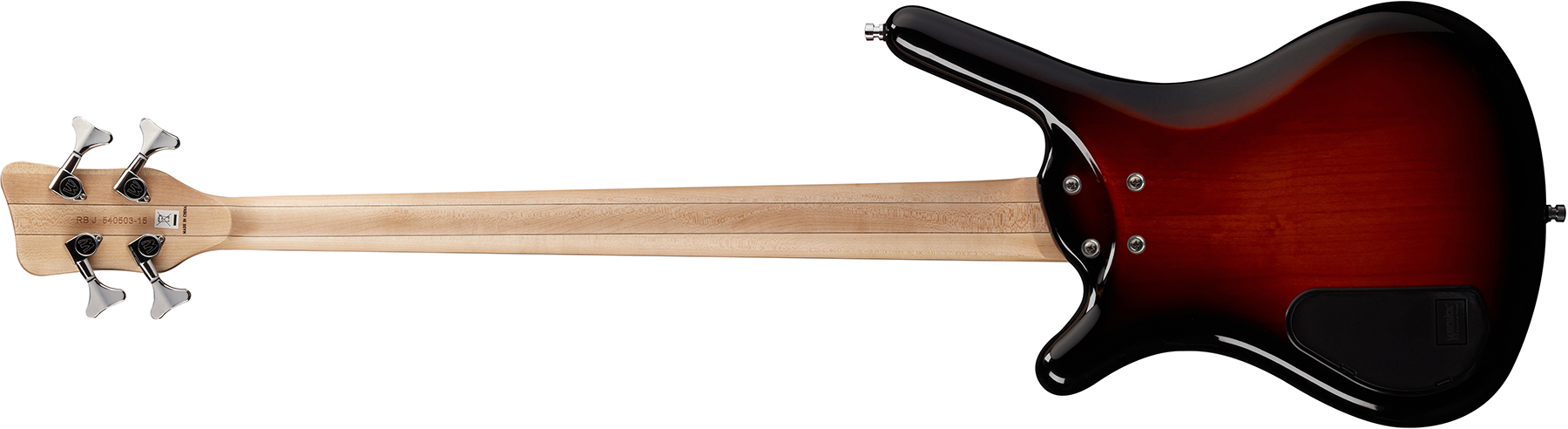 Featuring a beautiful flame Maple top, the The WARWICK Rockbass Corvette Classic 4 String (Almond Sunburst Transparent) solid body electric bass with active electronics and 24 frets Wenge fingerboard, will please musicians looking for an hybrid traditional/modern instrument : classic construction (Alder body, bolt on neck, 34" scale), versatile active pickups, usability.