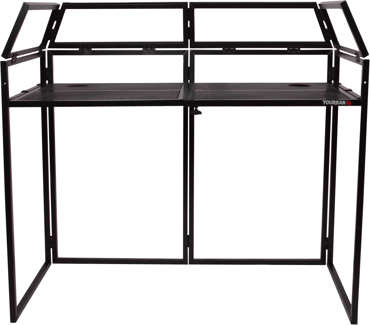 Der DJ BOOTH 500 ist ein professionelles, faltbares und sehr stabiles DJ-Möbel. Er lässt sich schnell und einfach aufbauen. Er verfügt über eine Tischplatte mit zwei Öffnungen, durch die Sie alle Ihre Kabel verlegen können. Außerdem wird das Möbel mit zwei Lycra-Bezügen (schwarz und weiß) geliefert. Um den Transport zu erleichtern, wird eine Hülle für das Gestell mitgeliefert.